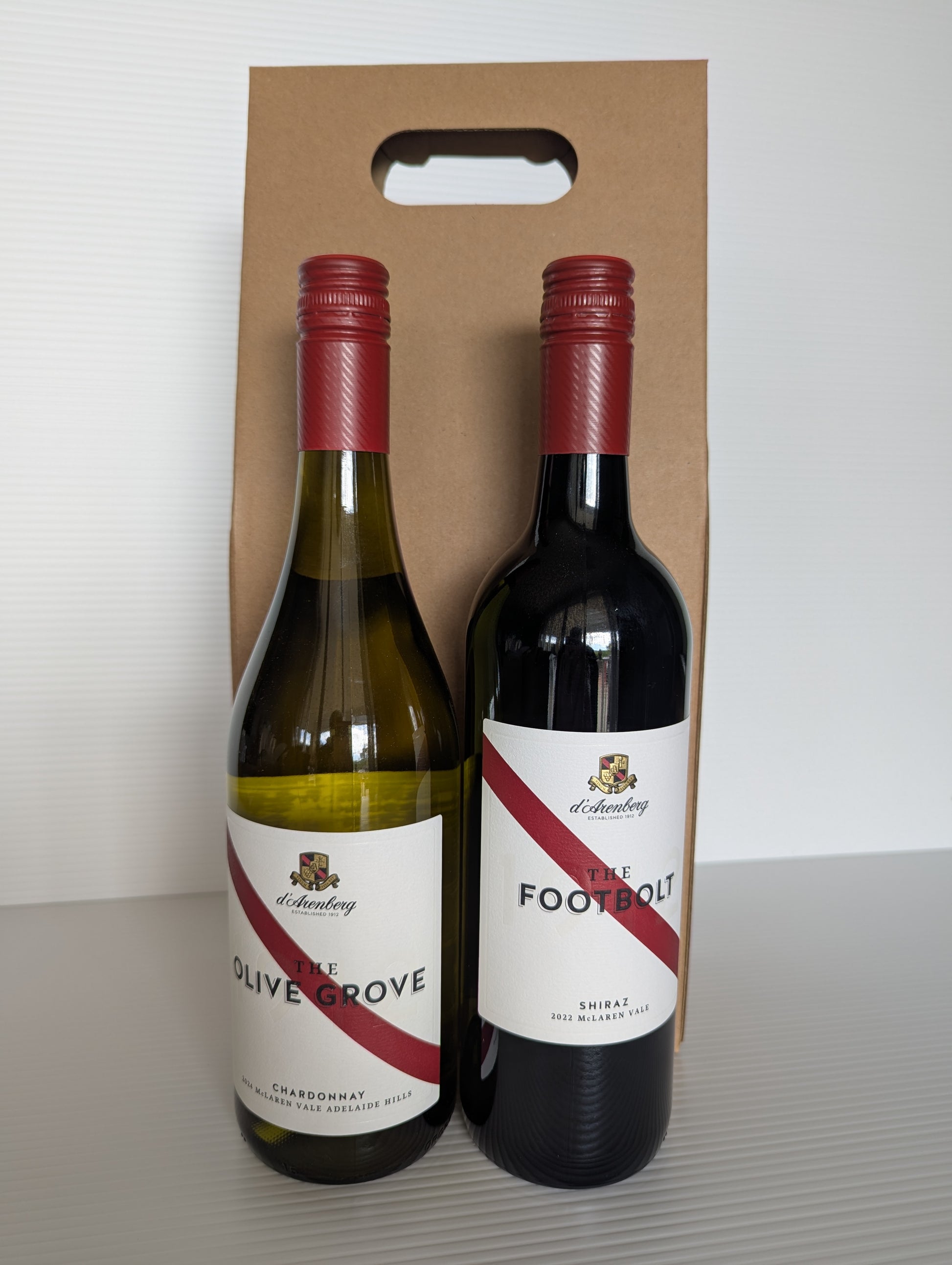 Enjoy this wonderful selection of d'Arenberg wines including The Olive Grove Chardonnay and The Footbolt Shiraz, packaged and sent directly to you.
